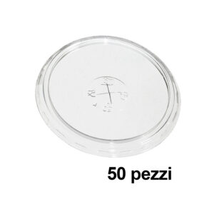 50 Coperchi piatti per bicchieri diametro 95 mm PET con foro a x