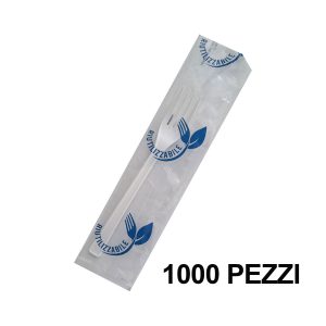 1000 Forchette in plastica Imbustate singolarmente con Tovagliolo