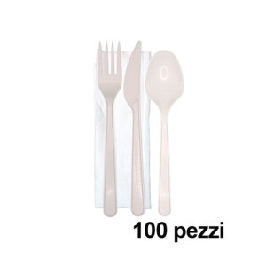 100 Kit coltello + Cucchiaio + tovagliolo in polipropilene