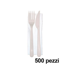 500 Tris posate biodegradabili e compostabili in cpla+tovagliolo