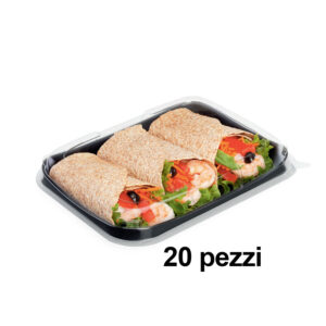 50 Vaschette+coperchio contenitori base nera 155X115 h20
